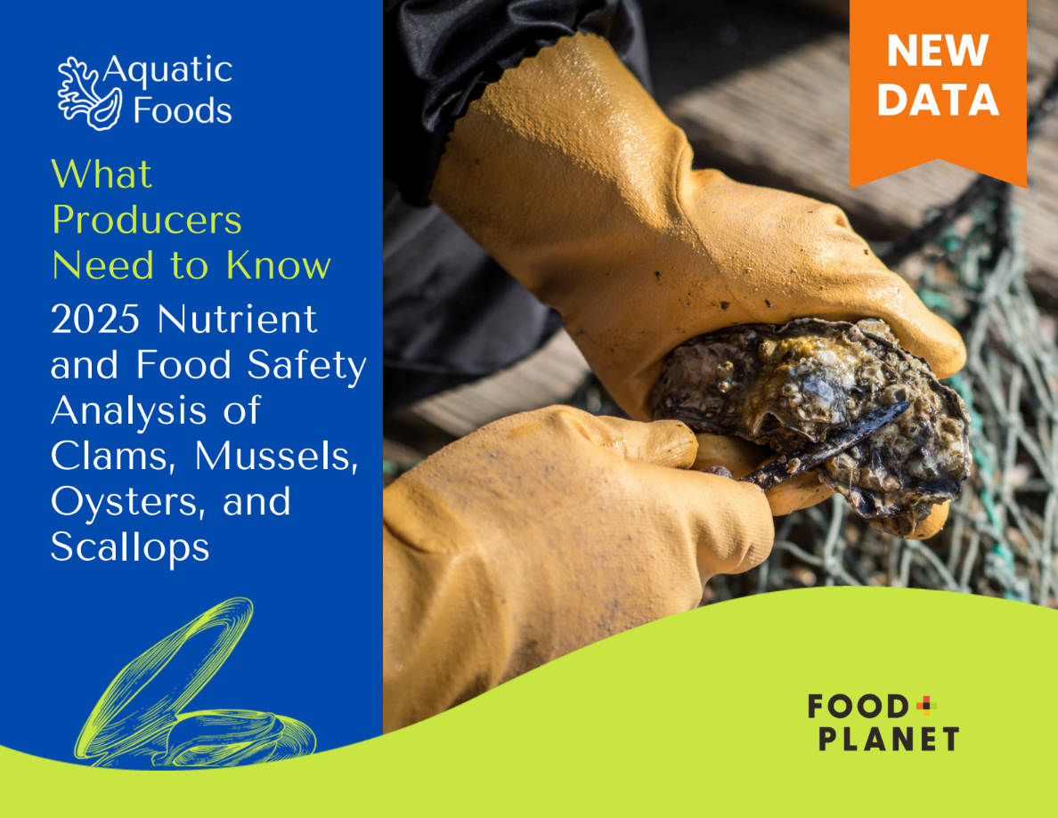 Learn about the latest nutrition and food safety science on North American seaweed, clams, mussels, oysters, and scallops. This unique analysis of commonly cultivated and consumed aquatic foods is based on producer’s top health and safety questions in order to provide confident, science-based messages on these delicious, sustainable, nutritious foods from the sea.