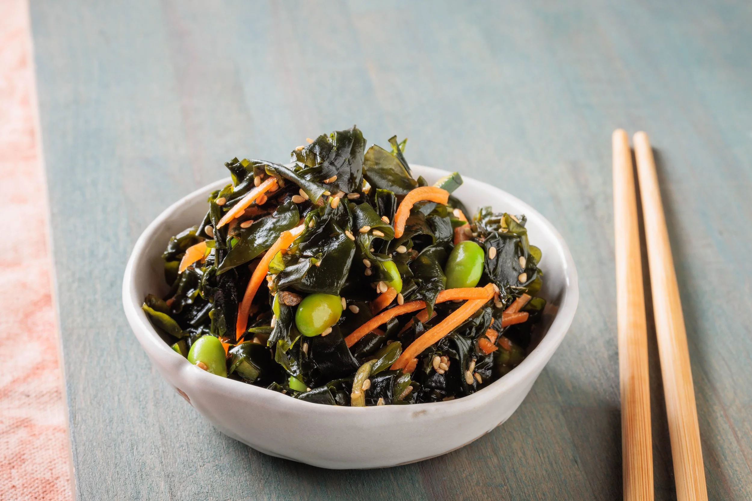 You can make an easy, delicious, nutritious wakame salad at home, just like you might find in a sushi restaurant. Wakame is a type of kelp packed with iodine, manganese, magnesium, and calcium. Julienned carrots, cucumbers, and edamame not only add texture and color to this salad, but a boost of nutrition.